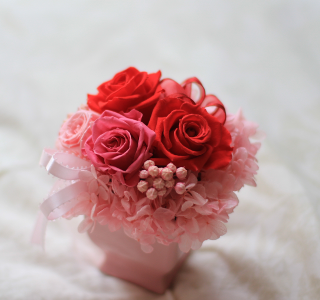 HOME > 商品詳細 > 商品詳細P-14 Details レッドがメインのアレンジ。リンフラワーやりぼんが2種入ってます母の日やちょっとしたプレゼントなどにおススメです。 Size 最大幅 12㎝ 高さ 14㎝ Price ¥3,200- クリアボックスに入れてお届けします。